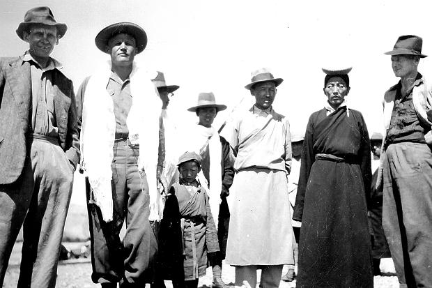 Фото в Лхасе: Званцов второй слева, Харрер крайний справа. Крайний слева - Дмитрий Недбайлов, русский эмигрант.